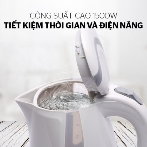Công suất mạnh mẽ 1850W cho thời gian nấu nước nhanh chóng, giúp tiết kiệm điện năng tối đa, đồng thời không sản sinh ra các chất độc hại dưới tác động của nhiệt độ cao.