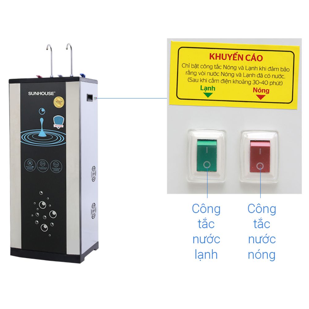 – Sản phẩm máy lọc nước RO nóng nguội lạnh Sunhouse SHR76210CK 10 lõi có 2 mẫu mã khác nhau, sẽ được giao hàng ngẫu nhiên: