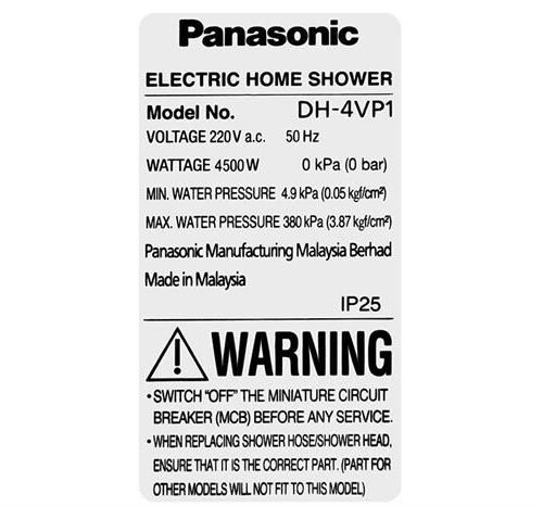 Máy nước nóng trực tiếp Panasonic 4500W DH-4VP1VW được trang bị 9 tính năng an toàn điện và tương thích điện từ (EMC):