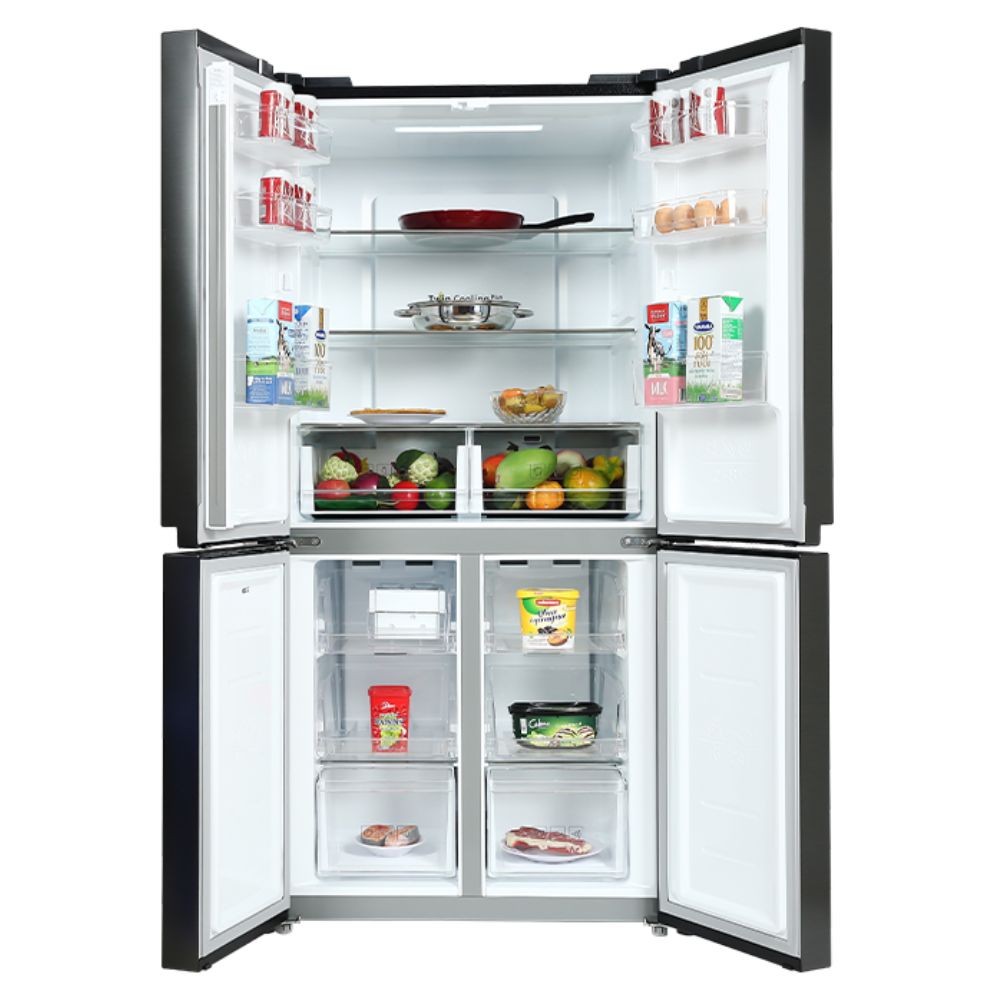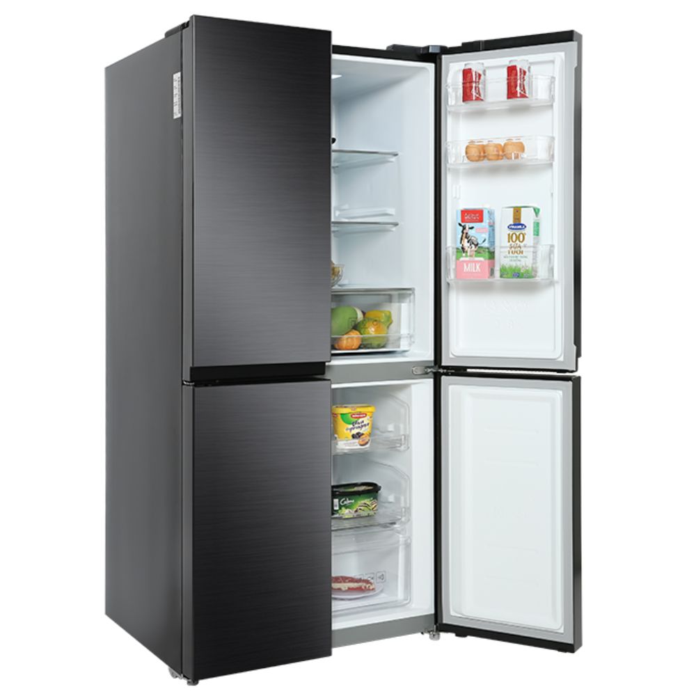 Thiết kế với 4 cửa và bề mặt cửa tủ làm bằng thép không gỉ có độ bền cao, không lưu dấu vân tay, mang đến vẻ ngoài sang trọng, hiện đại cho căn bếp. Đặc biệt, không gian lưu trữ bên trong rộng và các cửa tủ được thiết kế đóng mở độc lập, dễ dàng tìm kiếm thực phẩm yêu thích.